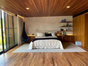 Na casa principal, além das suítes dos moradores, foram construídas duas suítes com closet para acomodar os familiares mais próximos. Duas gourmeterias no pavimento íntimo completam a estrutura para oferecer mais conforto e praticidade aos moradores e hóspedes.