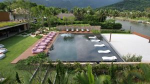 Piscina e quadra de futevôlei: lazer é o ponto focal